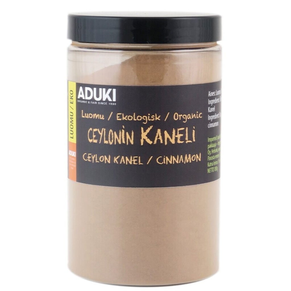 Adukin luomu Ceylonin kaneli on aitoa, lempeän makuista kanelia Sri Lankasta. Ceylonin kaneli tunnetaan erityisesti pehmeästä aromistaan sekä matalammasta kumariinipitoisuudestaan verrattuna tavalliseen kassiakaneliin. Se sopii erinomaisesti monipuoliseen käyttöön leivonnassa, jälkiruoissa, puuroissa ja mausteisissa juomissa.