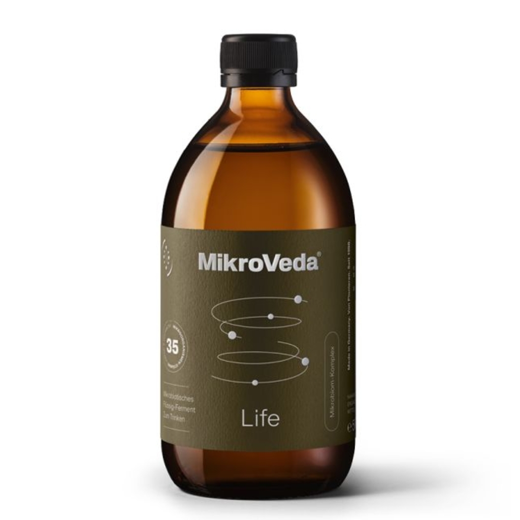 Mikroveda Life on luonnollisesti fermentoitu, puhdas mikro-organismikompleksi, joka sisältää 35 mikro-organismikantaa sekä rypäleensiemenjauhetta ja Reishi-sientä. Koostumuksensa ansiosta se soveltuu hyvin tuotteeksi suoliston mikrobiomin luonnollisen tasapainon tukemiseen ja ylläpitämiseen. Elävät bakteerikannat pääsevät suolistoon saakka ja tukevat sen hyvinvointia yhdessä monipuolisen ja tasapainoisen ruokavalion kanssa.