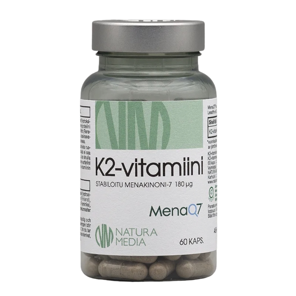 Natura Median K2-vitamiini sisältää hyvin imeytyvää ja pitkävaikutteista MK-7-muotoista K2-vitamiinia (MenaQ7®), joka edistää luuston pysymistä normaalina. K2-vitamiini toimii kehossa tärkeänä “liikenteenohjaajana” kalsiumille ja auttaa varmistamaan, että kalsium ohjautuu sinne, missä sitä tarvitaan eniten – luustoon.
