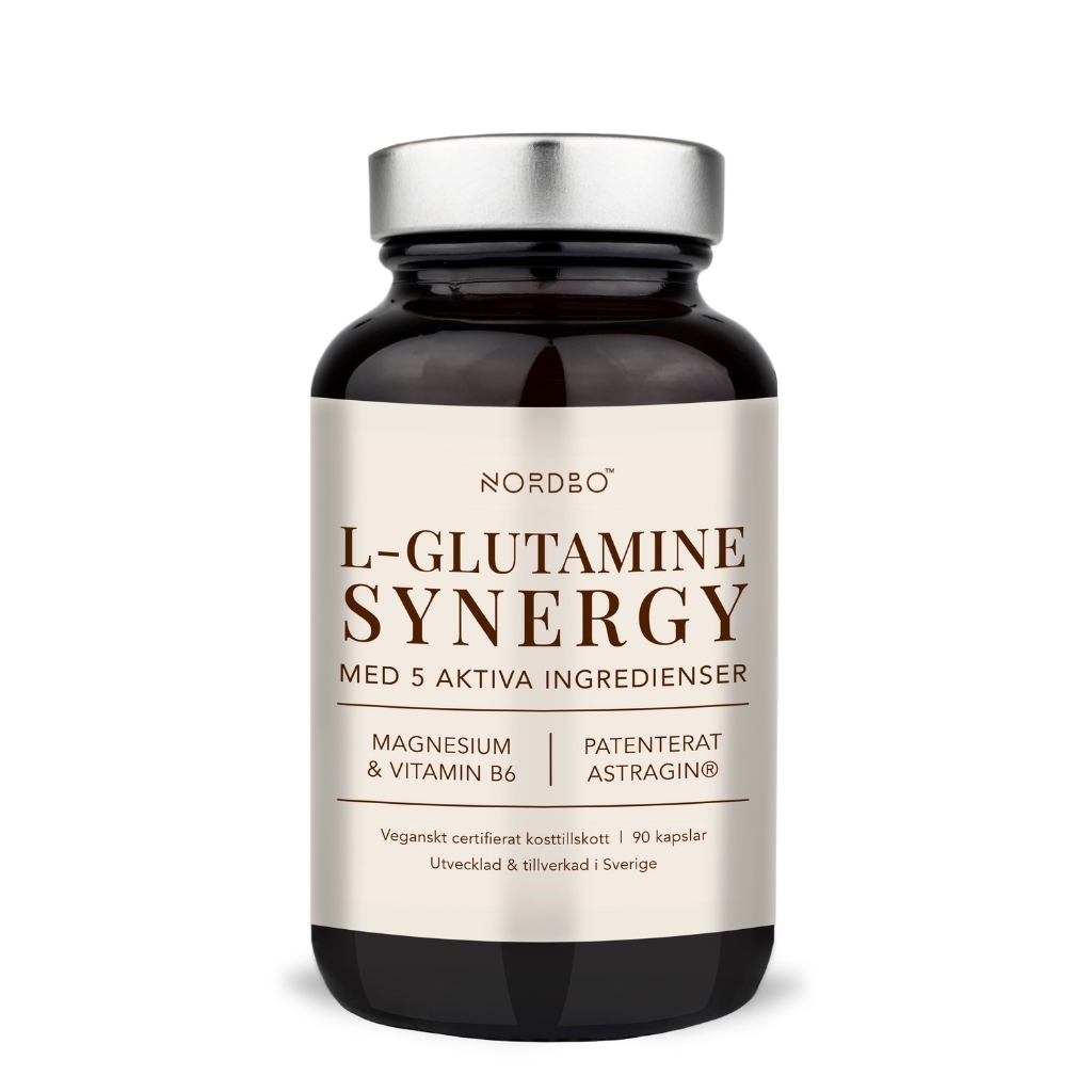Nordbo L-Glutamine Synergy on synerginen ravintolisä, joka yhdistää elimistön yleisimmän aminohapon L-glutamiinin magnesiumbisglysinaattiin, luonnolliseen Le Guérandais -merisuolaan, B6-vitamiiniin sekä AstraGin®-uutteeseen. Valmiste on suunniteltu tukemaan kehon palautumista, elektrolyyttitasapainoa ja jaksamista.