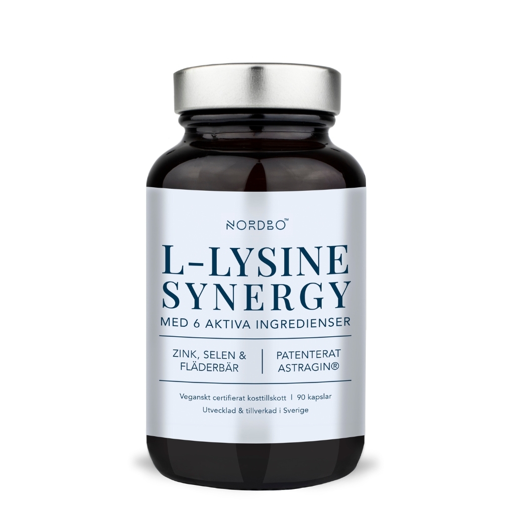 Nordbo L-Lysine Synergy on synerginen ravintolisä, joka yhdistää välttämättömän aminohapon L-lysiinin sinkkiin, seleeniin, mustaseljaan, B6-vitamiiniin sekä AstraGin®-uutteeseen. Valmiste on suunniteltu tukemaan elimistön normaalia proteiinisynteesiä, vastustuskykyä sekä ihon ja limakalvojen hyvinvointia.