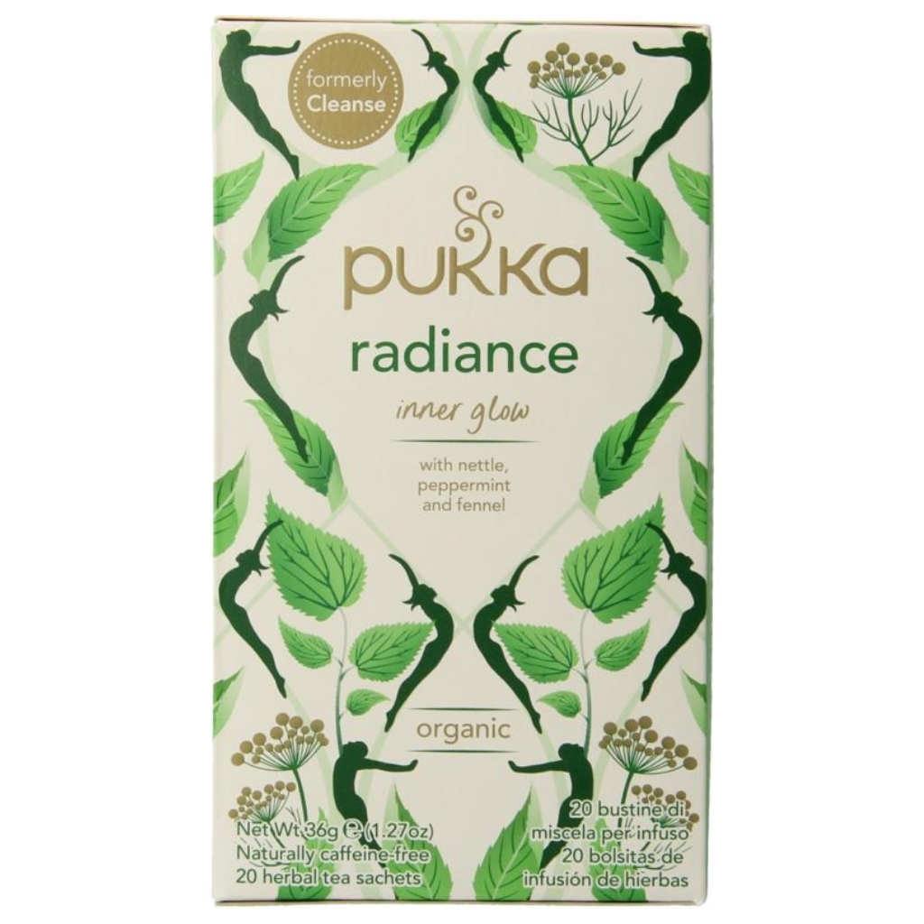 Pukka Radiance on luomu yrttitee, joka on suunniteltu tukemaan kehon luonnollista tasapainoa ja antamaan hehkua sisältäpäin. Se on valmistettu 100 % luomu ja eettisesti tuotetuista yrteistä, jotka on huolellisesti valittu makunsa ja ominaisuuksiensa perusteella. Radiance-tee on kofeiiniton yrttisekoitus, joka sopii nautittavaksi mihin aikaan päivästä tahansa.