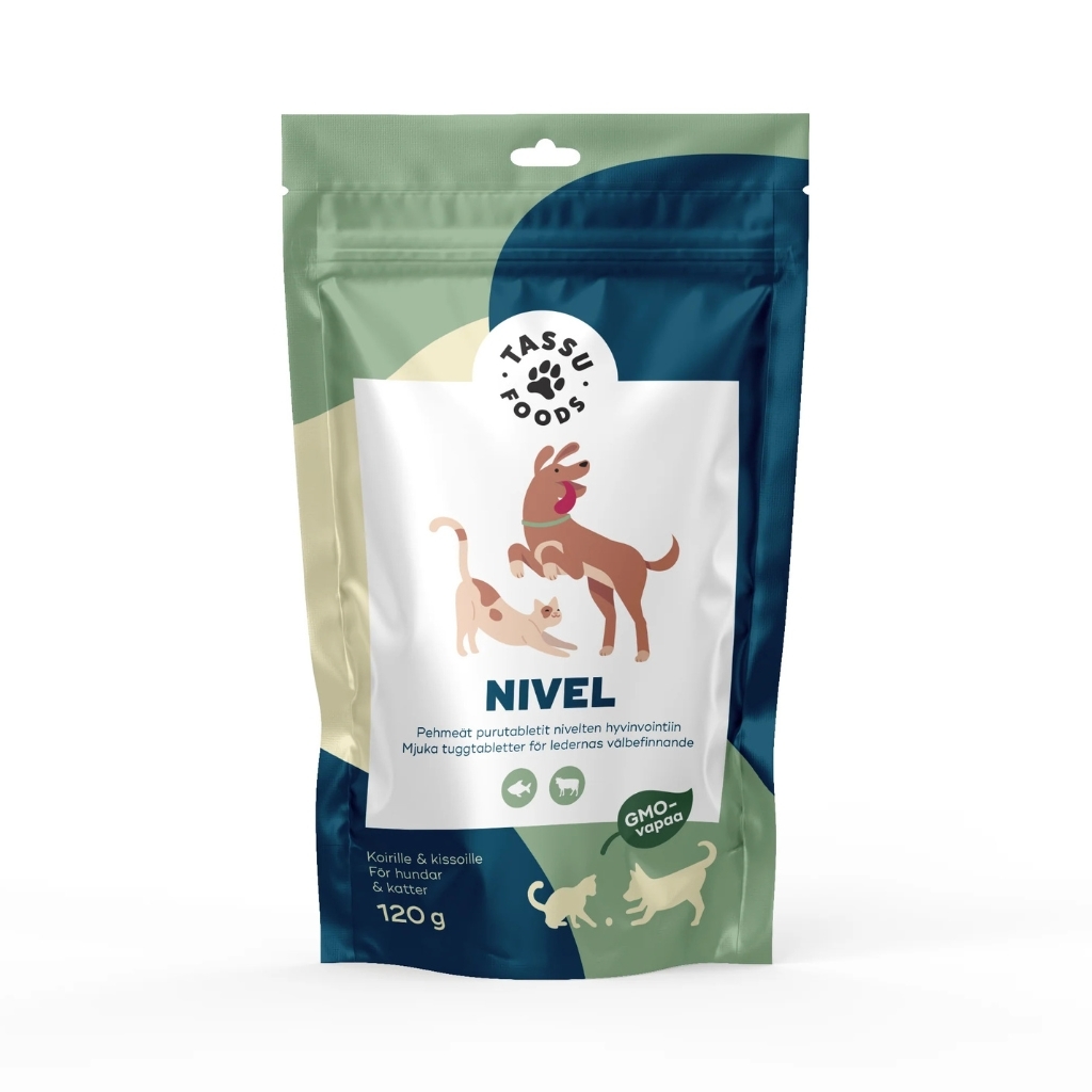 Tassu Foods Nivel on täydennysrehu koirille ja kissoille, joka sisältää nivelten hyvinvointia tukevia ainesosia, kuten harpagojuurta, viherhuulisimpukkaa, kollageenia, glukosamiinia, hyaluronihappoa, C-vitamiinia ja MSM:ää. Päivittäiseen ruokintaan lisättynä se auttaa ylläpitämään lemmikin liikkuvuutta ja elämänlaatua.